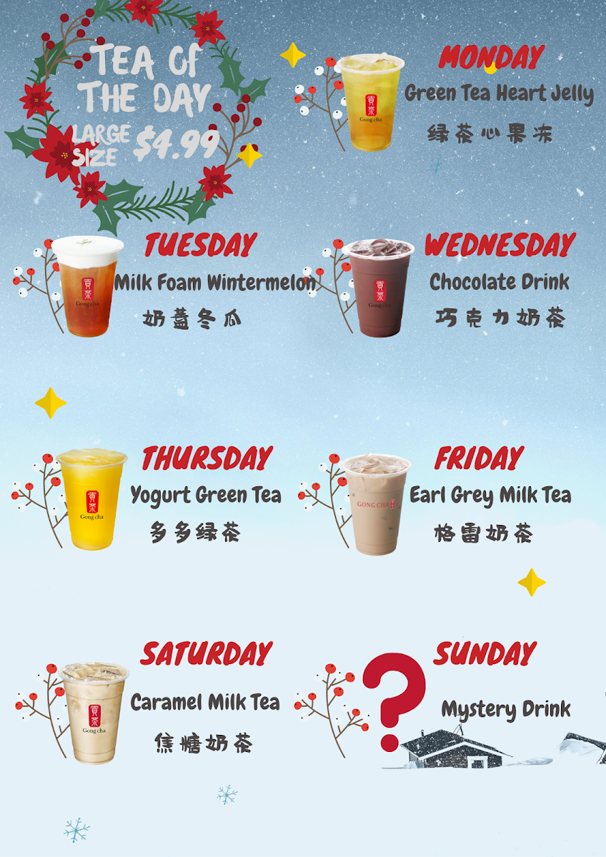 - Brewed Tea Series: Savor the purity of freshly brewed options like Earl Grey and Wintermelon Oolong, starting at CA$6.59.